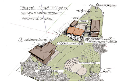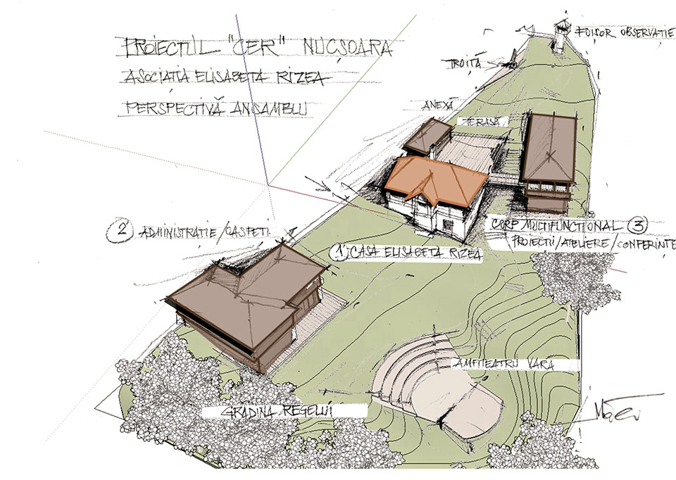 Pentru a putea intra în circuitul turistic, casa trebuie deservită funcțional de două edificii noi, un corp administrativ/casă de oaspeți și o sală multifuncțională (conferințe, proiecții, expozitii). Amenajarea peisageră a grădinii va fi altă componetă importantă a complexului memorial. Vom amenaja un mic amfiteatru de vară, o zonă de șezătoare cu vatră tradițională și vom construi un foișor de observație în punctul cel mai înalt al terenului. Întreg spațiul memorial este gândit pentru a putea avea vizitatori români și străini, care să aibă nu doar posibilitatea de a vizita casa încărcată de istorie în care au locuit soții Rizea, ci și să se bucure de activități educative, să asiste la prelegeri sau proiecții de filme documentare ori să beneficieze pur și simplu de un weekend muscelean tradițional.